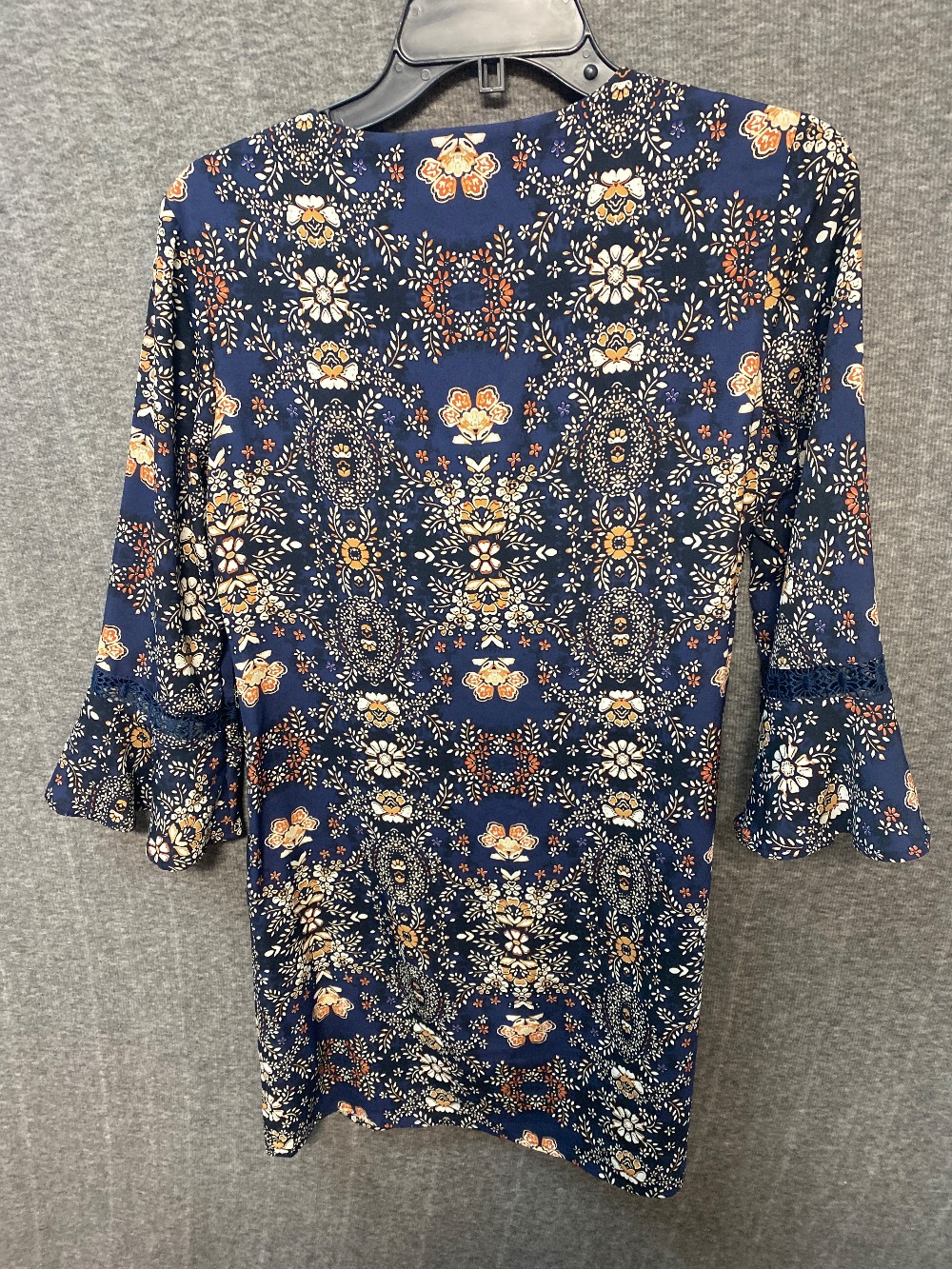 Home / 1/2 & 3/4 Sleeve Dresses / JESSICA SIMPSON Navy W/ Orange & Cream Floral Print Short Dress