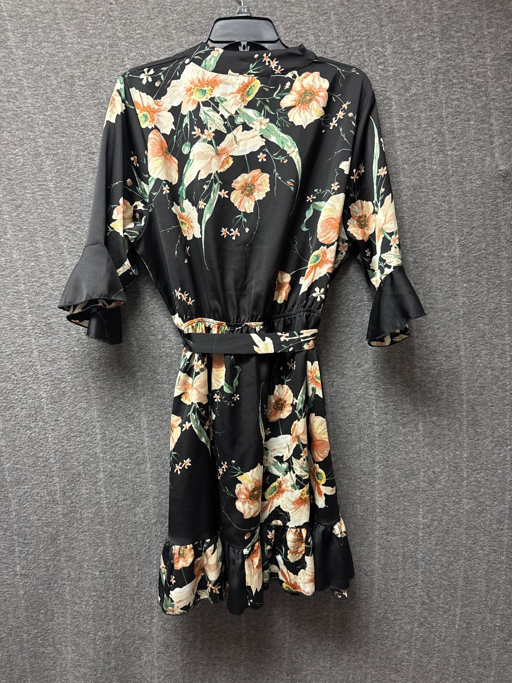 Home / 1/2 & 3/4 Sleeve Dresses / BOOHOO Black Floral V-Neck Ruffle Trim Dress
