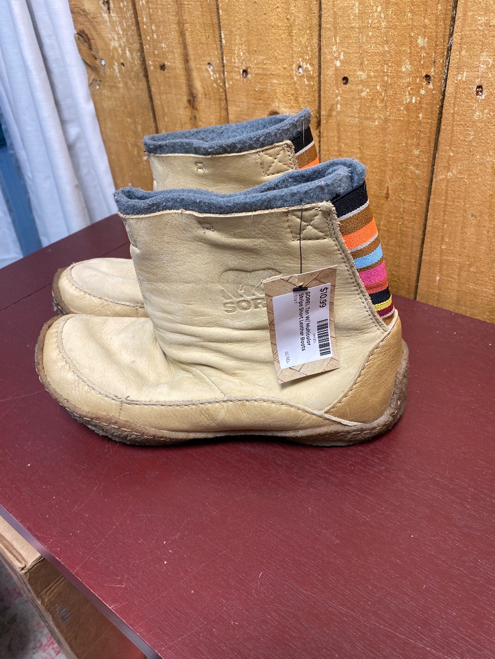 SOREL Tan W/ Multicolor Stripe Short Leather Boots
