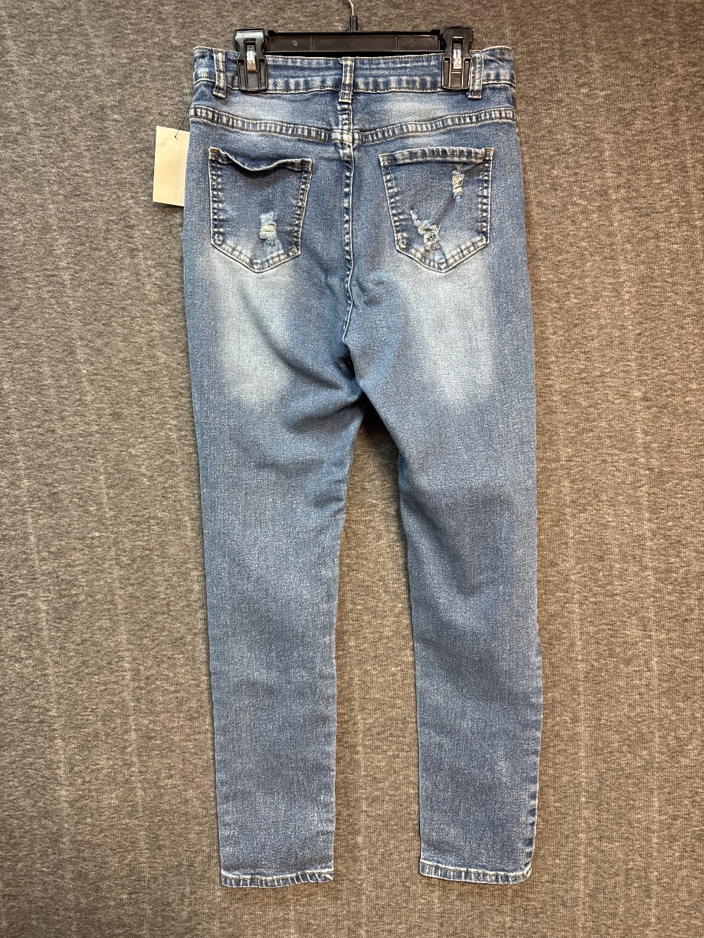 Home / CLEARANCE MISSY BOTTOMS / JEANS Med Blue Destructed Button Fly Jeans