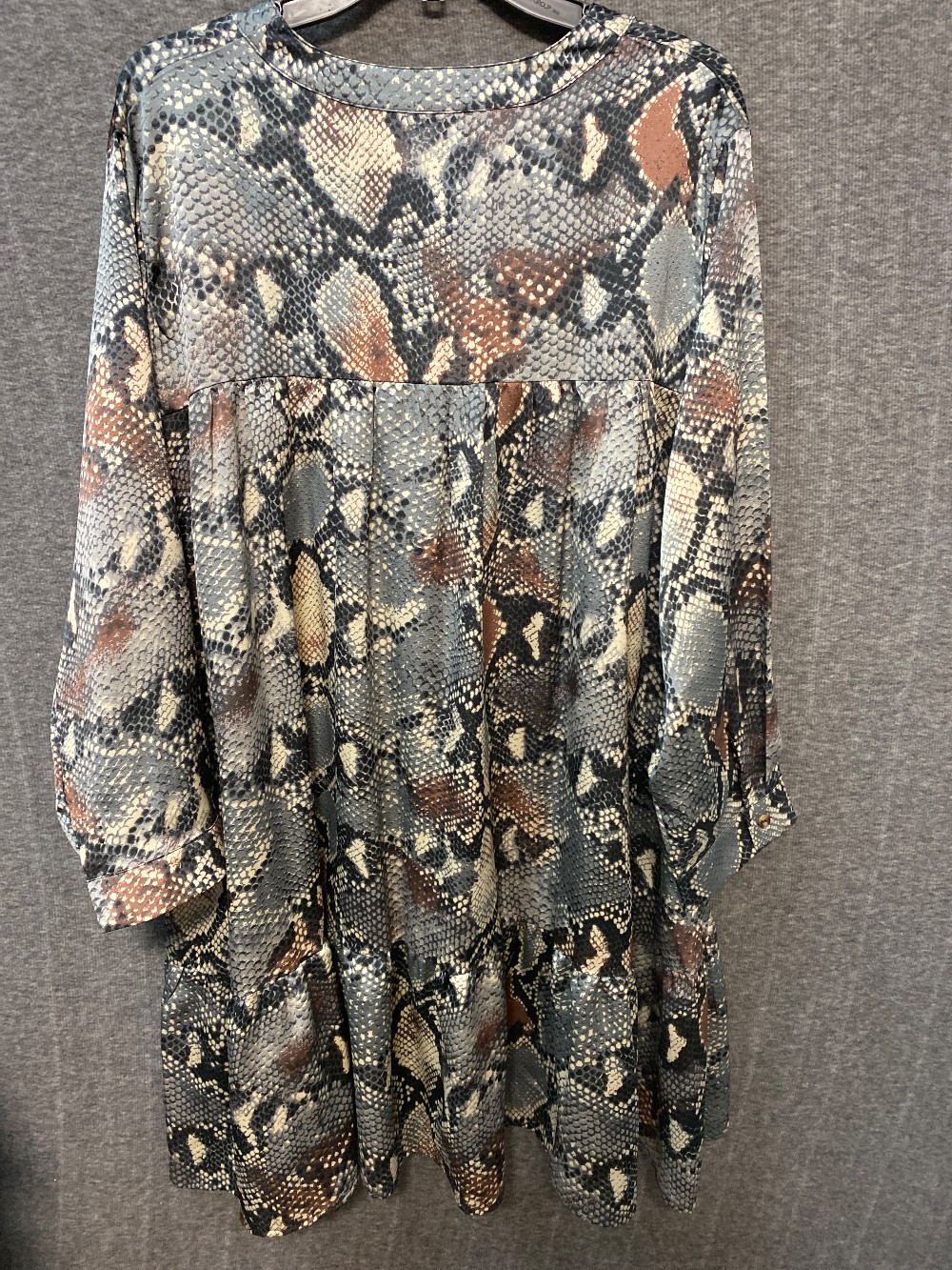 Home / CLEARANCE PLUS DRESSES, ONE PC & SETS / VELZERA Grey Snake Print V Neck Short Dress
