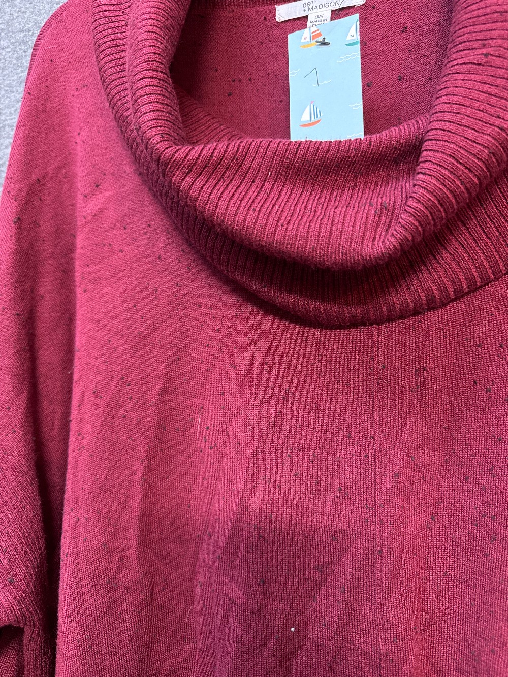 Home / CLEARANCE PLUS TOPS / 89TH & MADISON Maroon Heathered Cowl Neck Sweater