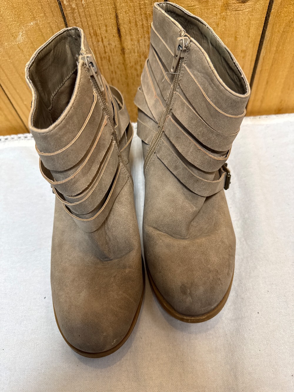 Home / CLEARANCE SHOES / JUST FAB Taupe Short Boots