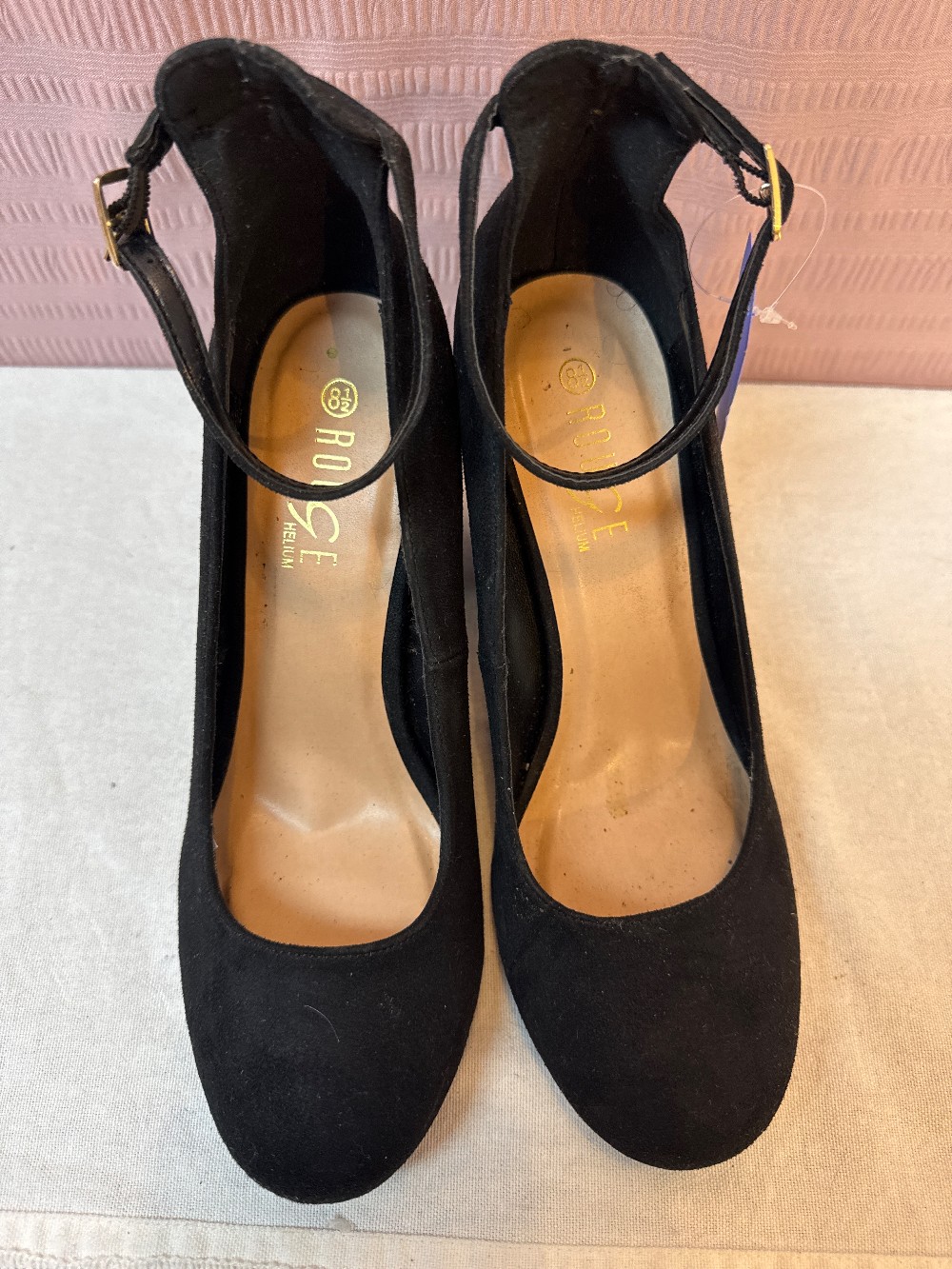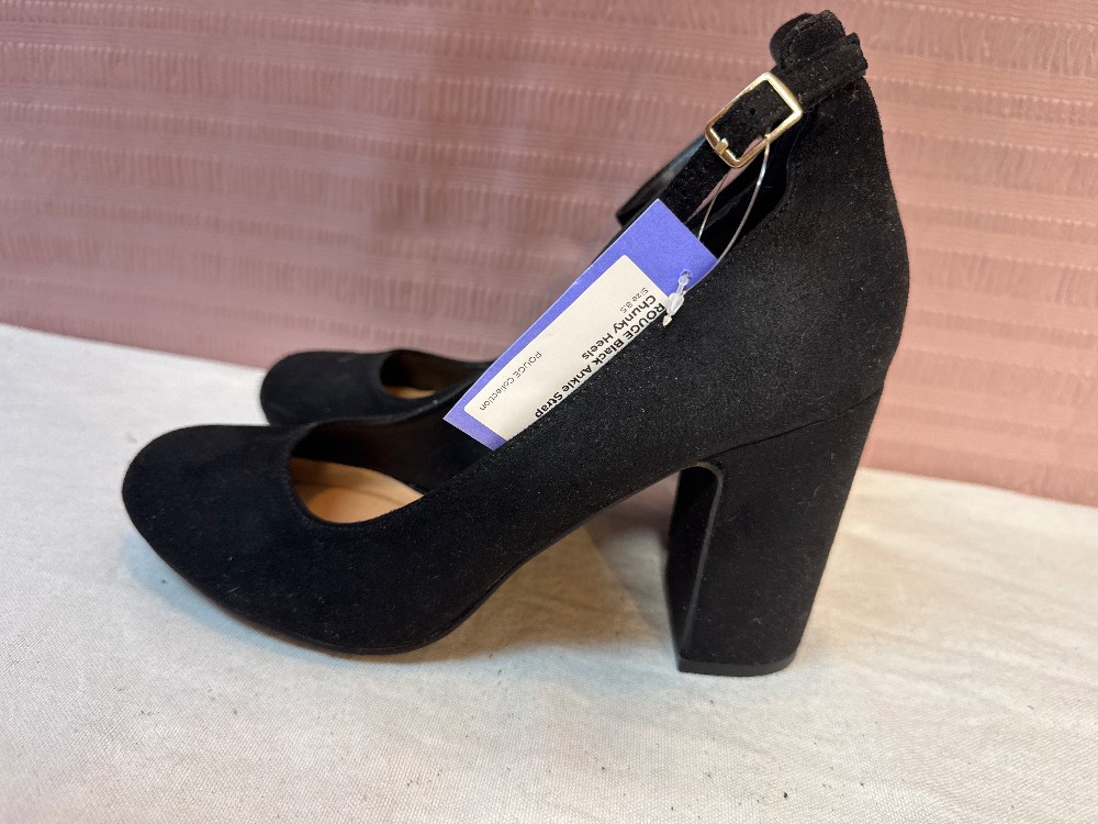 Home / CLEARANCE SHOES / ROUGE Black Ankle Strap Chunky Heels