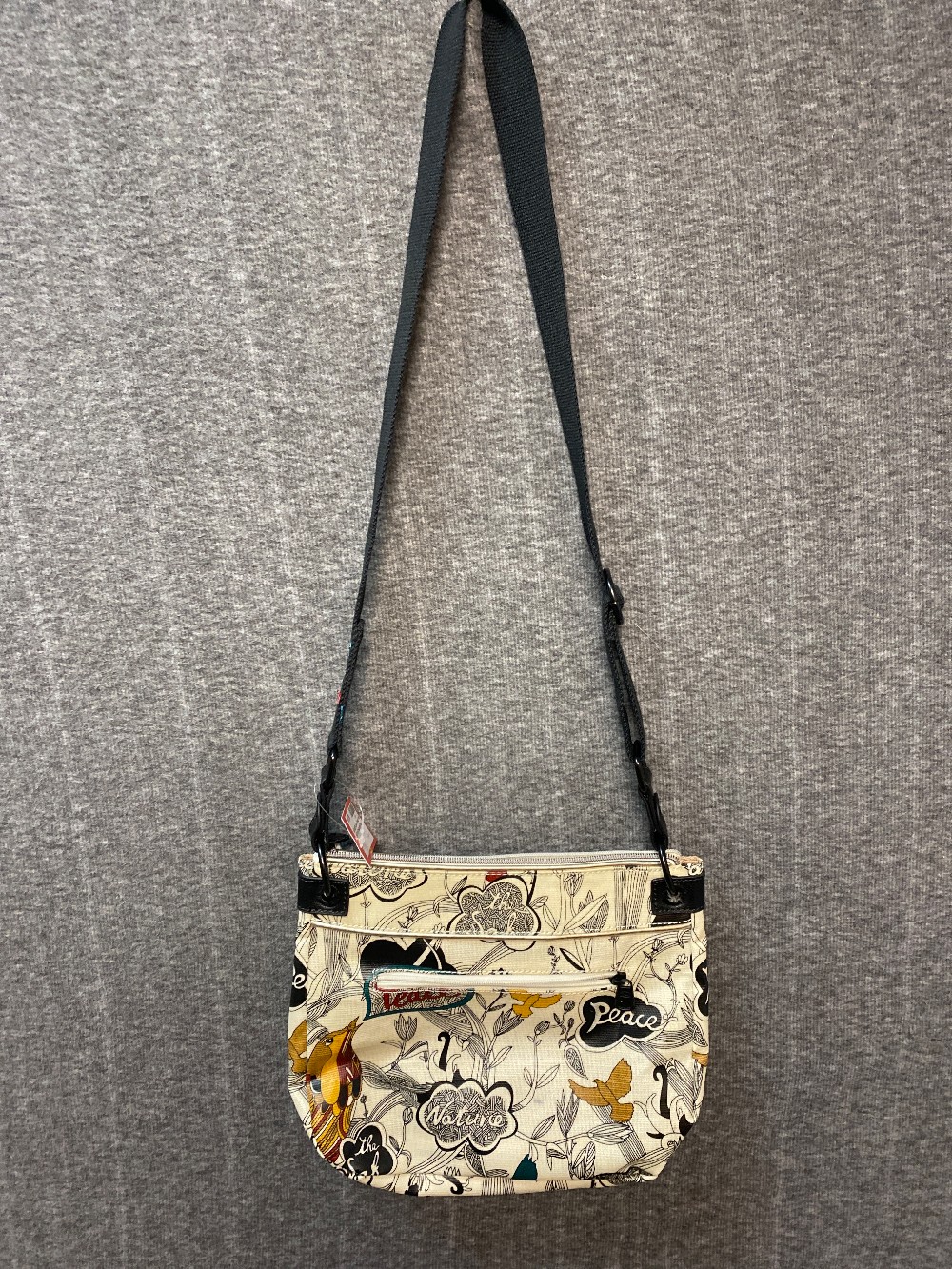 SAKROOTS Cream "Peace" And Bird Print Crossbody Purse