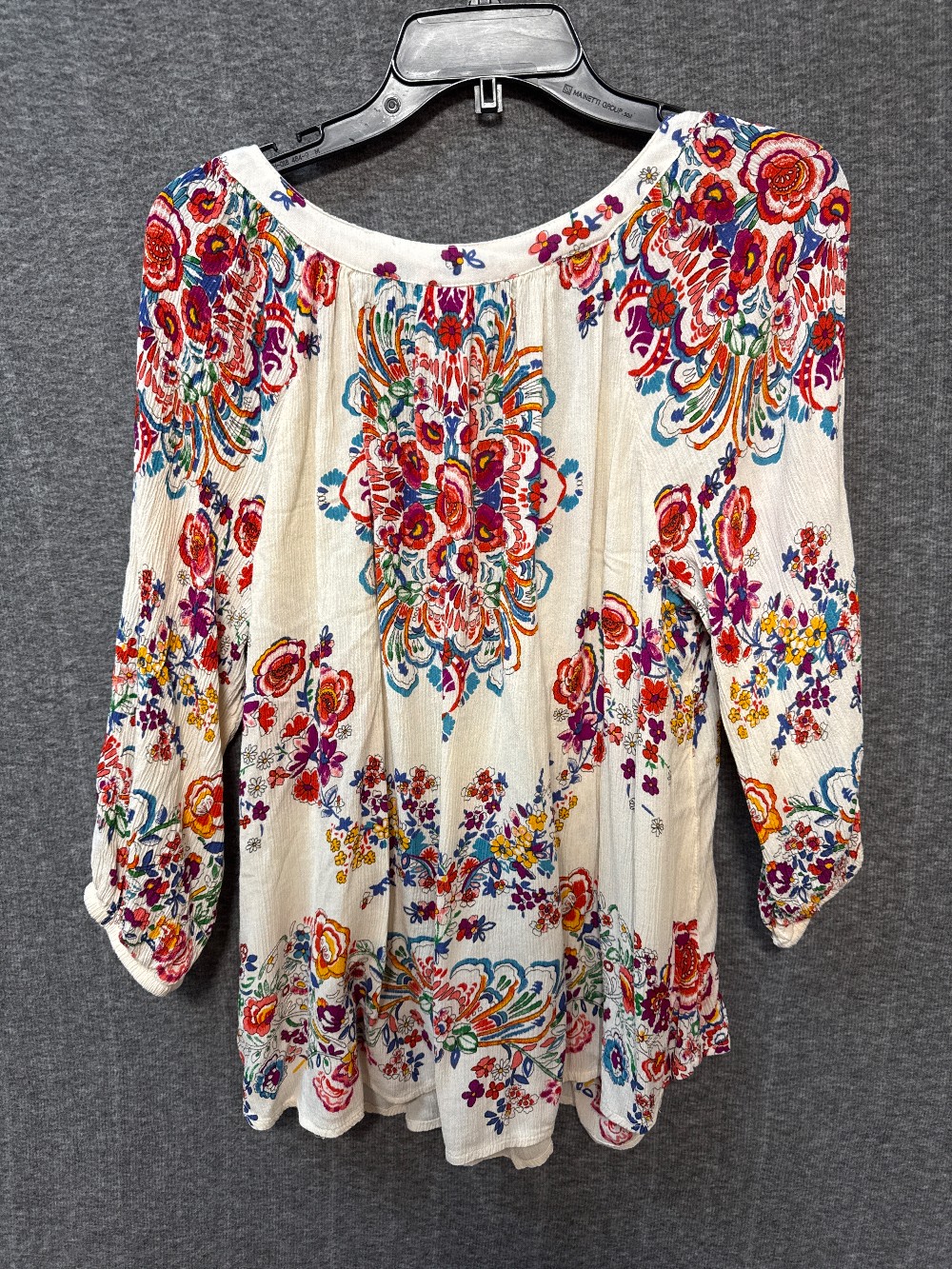 Home / Missy 1/2 & 3/4 Sleeve / BILA Ivory w/ Floral Print Crinkle Cotton Top