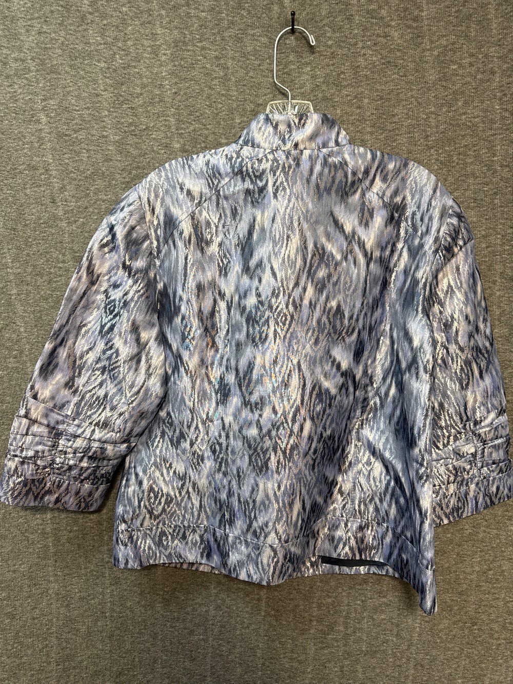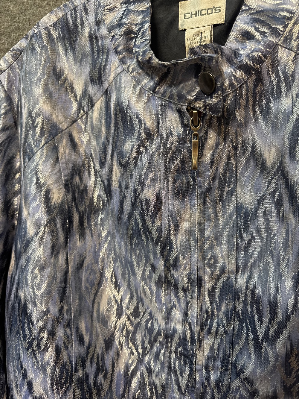 Home / Missy Blazers & Shackets / CHICO’S Blue Shimmer Print Zip Blazer