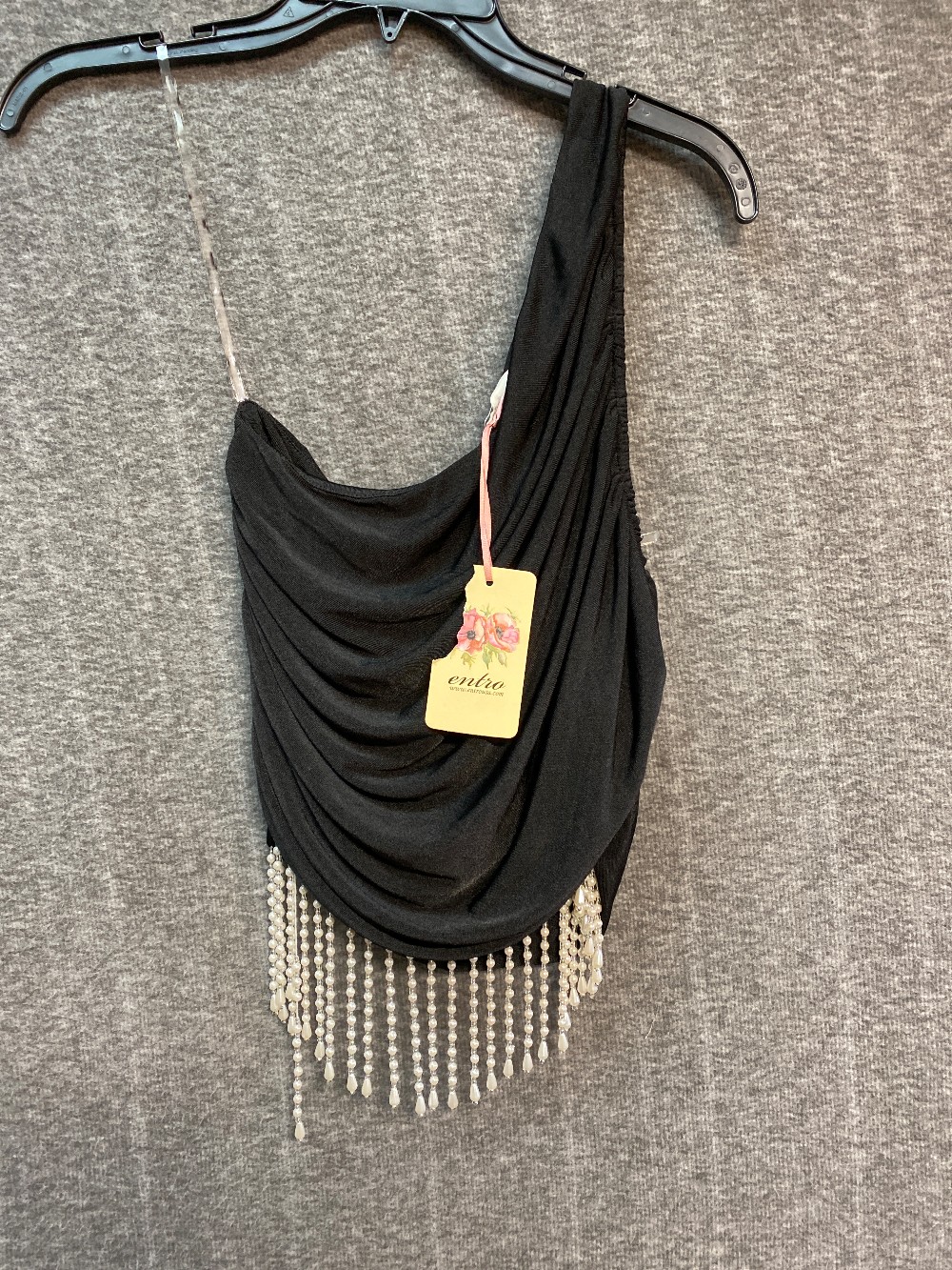 Home / Missy Sleeveless & Tank Tops / *NEW* ENTRO Black One Shoulder Knit Top w/ Pearls