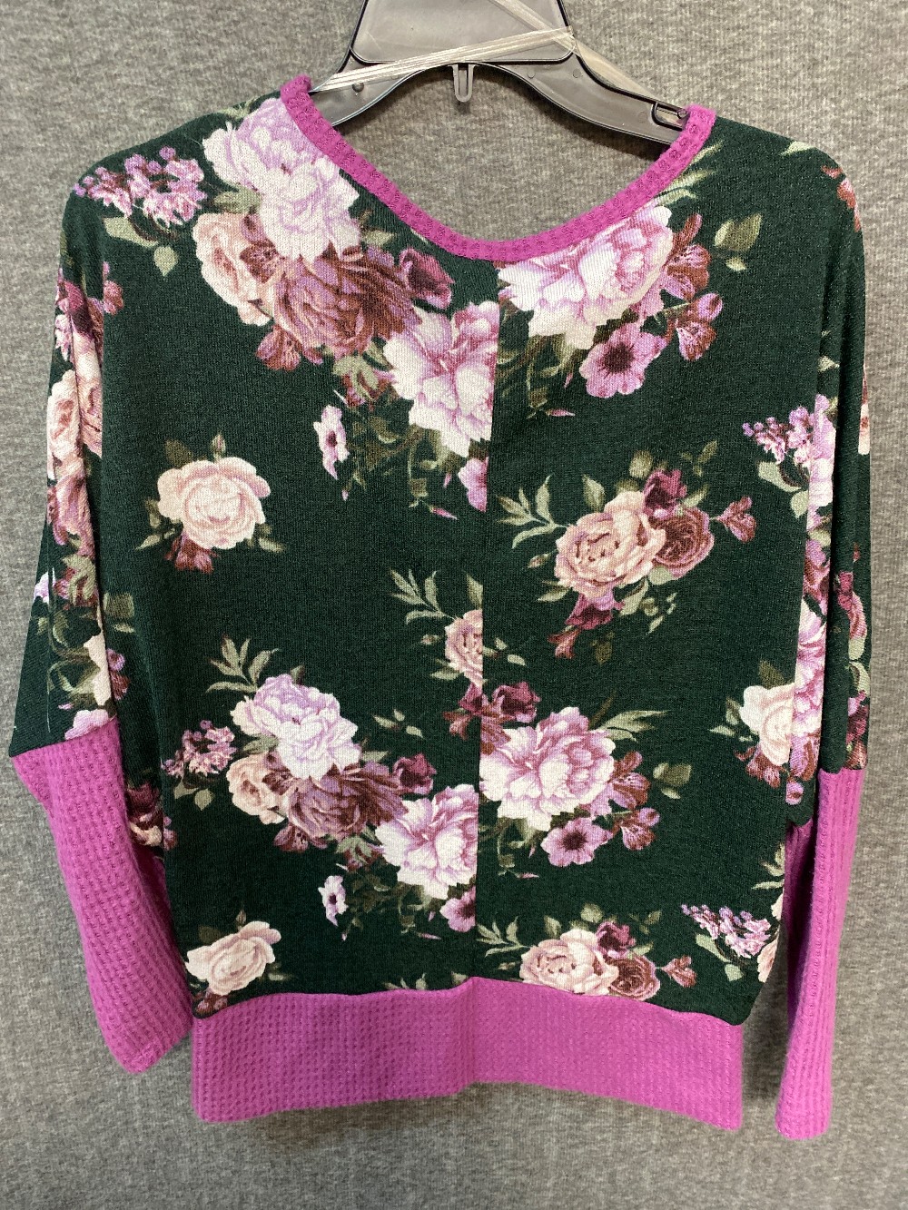 WHITE BIRCH Hunter Green W/ Multicolor Floral W/ Pink Edging Sweater
