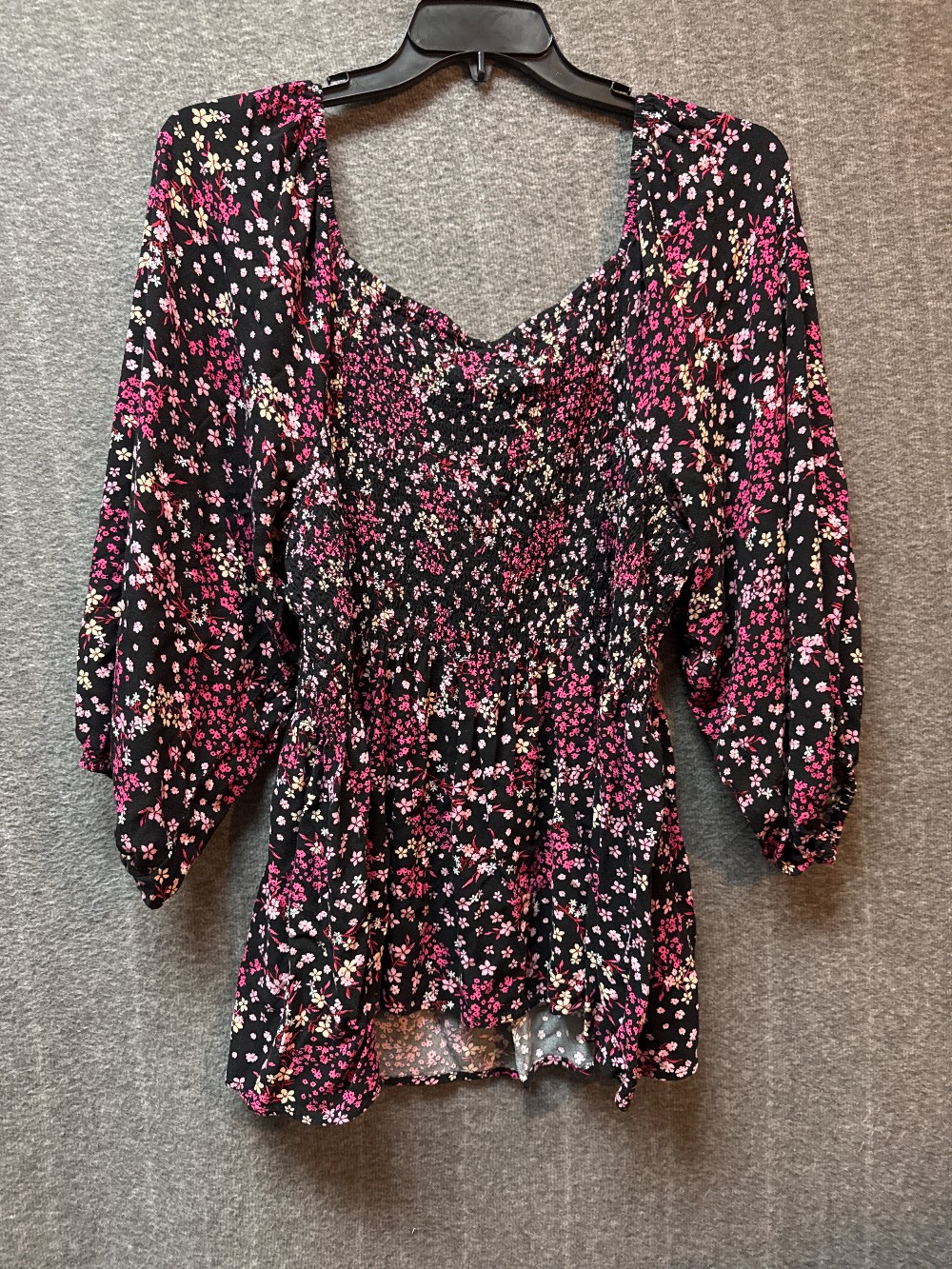 BOBEAU Black w/ Pink Flowers Smocked Top