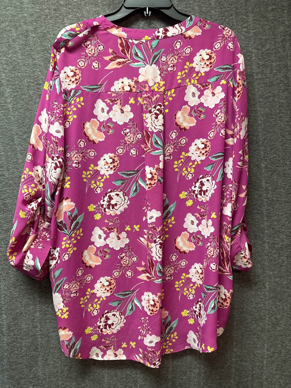 Home / Plus 1/2 & 3/4 Sleeve / SIMPLY EMMA Magenta Floral V-Neck Blouse