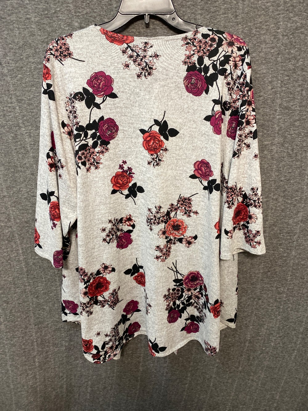 STAR VIXEN Grey Heathered W/ Red Floral Cardigan