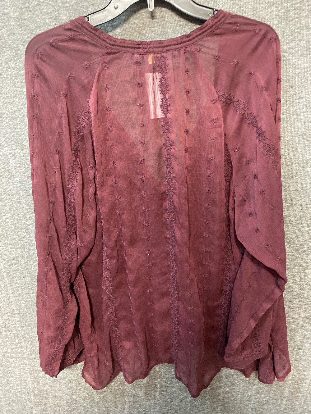 Home / Plus Long Sleeve / DEMOCRACY Burgendy V Neck 1/2 Button Sheer Blouse
