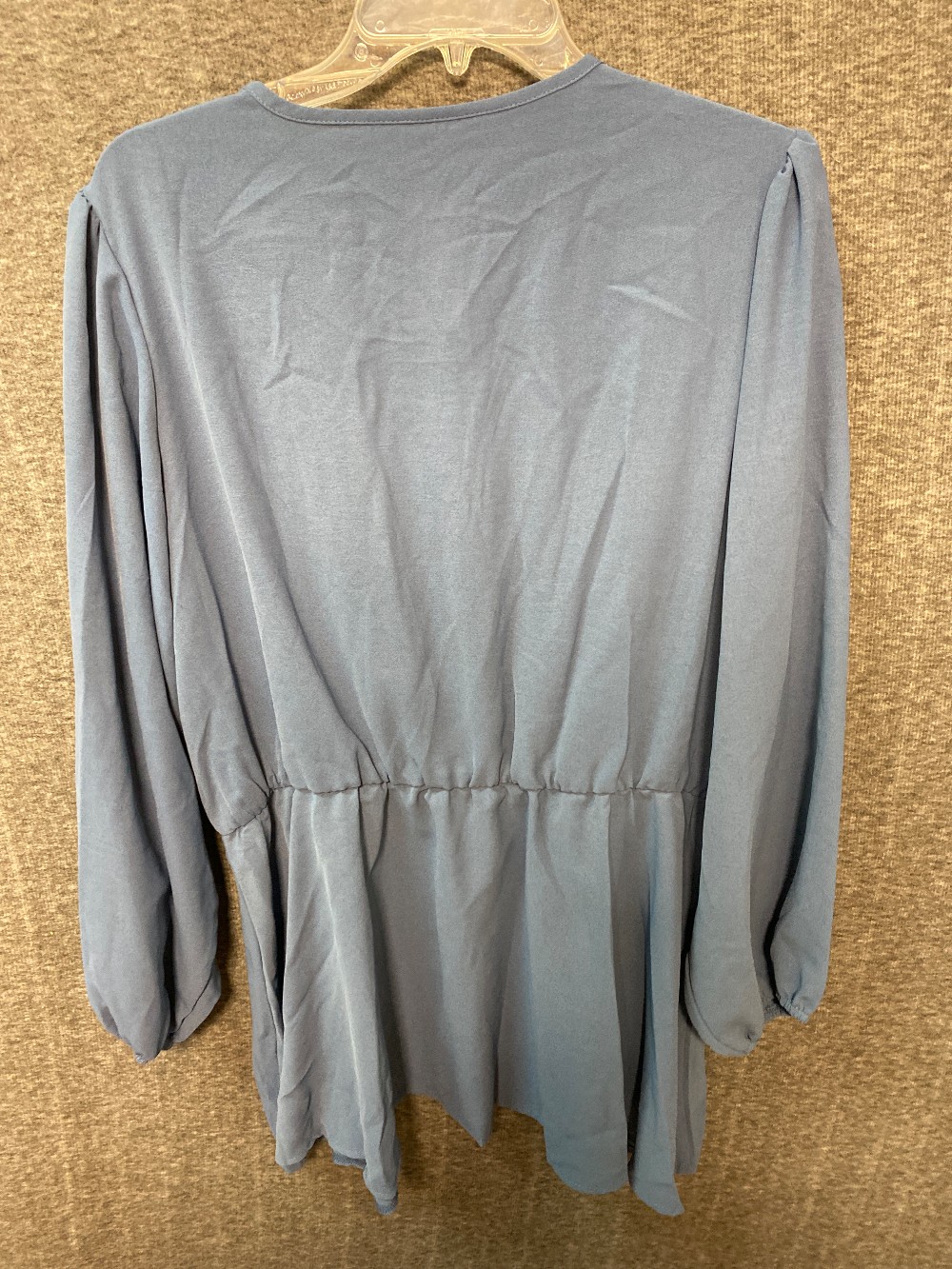 Home / Plus Long Sleeve / Blue V Neck Blouse W/ Gold Buckle