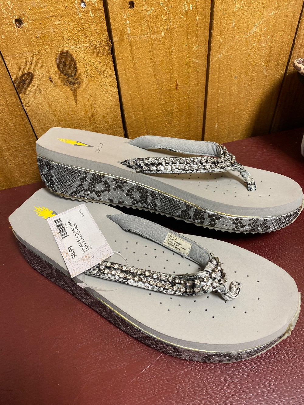 Home / Sandals / VOLATILE Grey And Silver Snake Print Flip Flops