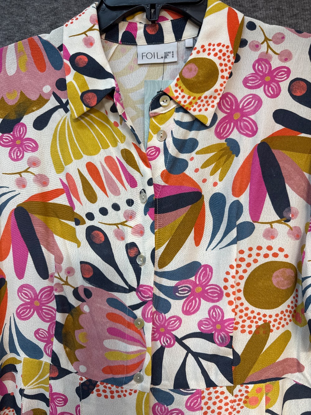 Home / Short Sleeve Dresses / FOIL Multicolor Print Button Front Dress