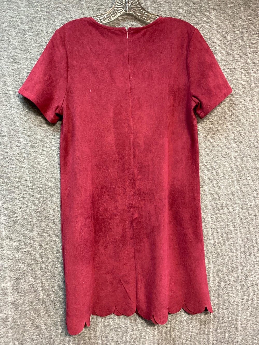 Home / Short Sleeve Dresses / MOON Maroon Velvet Look Scalloped Edge Dress