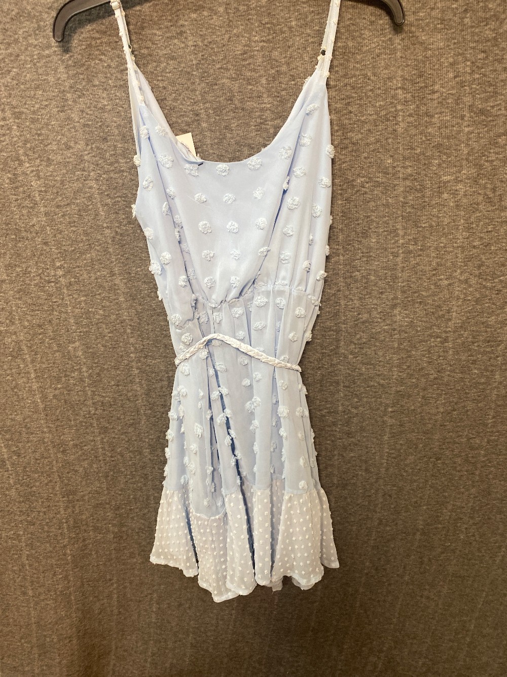 Home / Sleeveless Dresses / Light Blue Dotted Sleeveless Short Dress