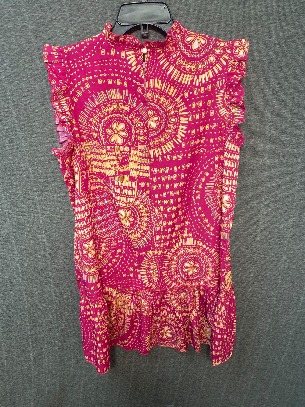 SHEIN Fushia W/ Yellow Print Ruffle Sleeve Short Dress